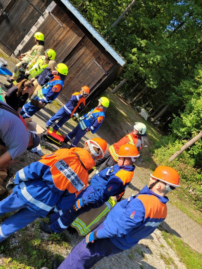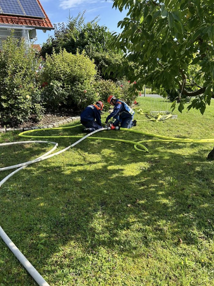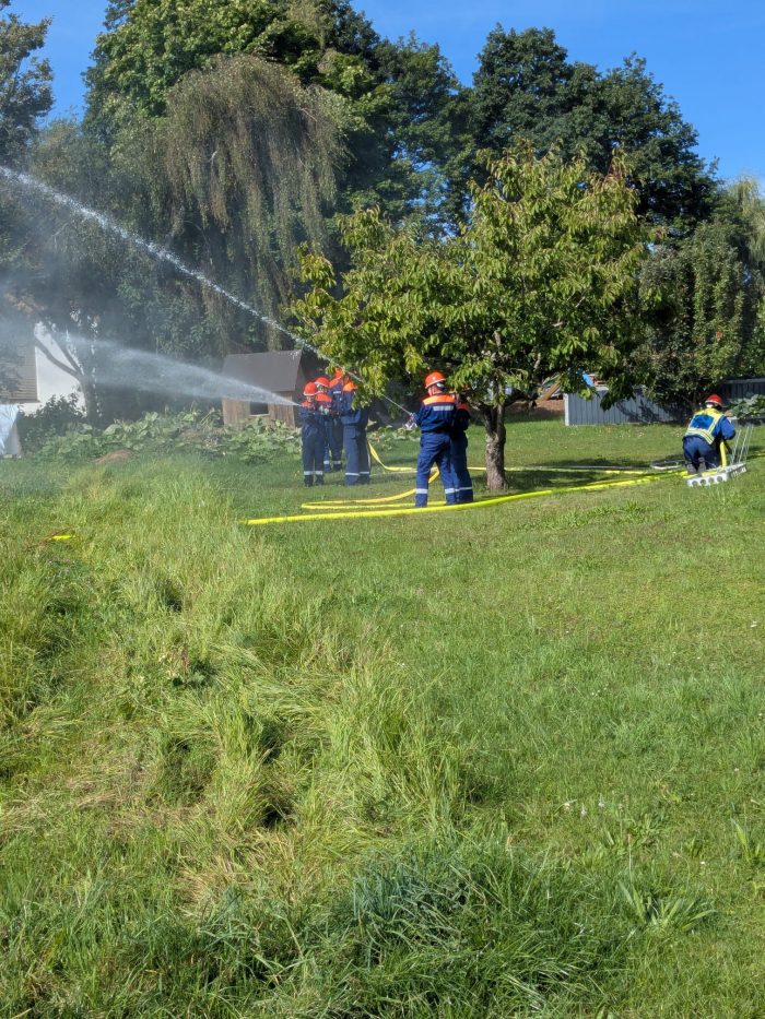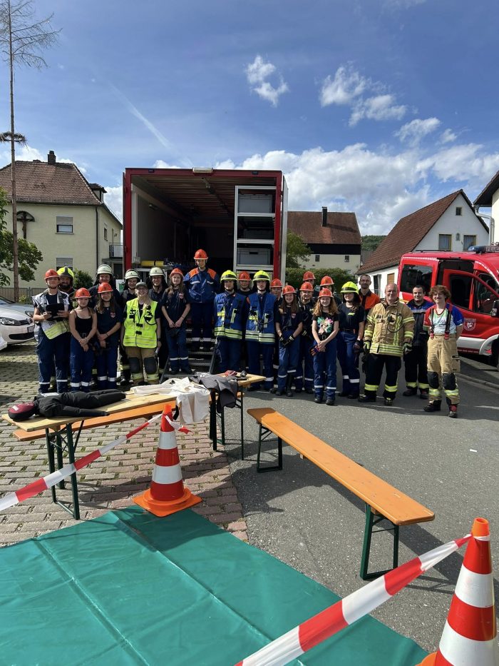 Am Samstag um 08:00 Uhr trafen sich die Jugendlichen am Gerätehaus, wo die Fahrzeuge übernommen wurden. Für die Mädels und Jungs sollte es jedoch kein ruhiger Tag werden. Bereits kurz darauf folgte die erste Alarmierung: Ein Verkehrsunfall mit einem Traktor musste bewältigt werden. Kaum war dieses Szenario erfolgreich abgearbeitet, ertönte schon der nächste Alarm – ein privater Rauchmelder hatte ausgelöst. Nach Abschluss dieses Einsatzes war es Zeit für eine Stärkung im Gerätehaus, wo ein leckeres Mittagessen bereitstand. Frisch gestärkt ging es weiter: Aus einem PKW trat ein unbekannter Gefahrstoff aus, der gesichert werden musste. Im Anschluss folgte eine theoretische Schulung im Gerätehaus, doch lange blieb es nicht ruhig. Die nächste Alarmierung ließ nicht auf sich warten – eine Brandmeldeanlage hatte ausgelöst. Zum Abschluss des ereignisreichen Tages stand noch ein Palettenbrand auf dem Programm, der ebenfalls erfolgreich abgearbeitet wurde. Nach einem gemeinsamen Abendessen ging es dann für alle nach Hause.