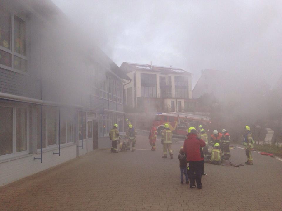 Mit dem Einsatzstichwort „Brand im Heizungsraum – Personen in Gefahr“ Rückte die Mannschaft zur komplett renovierten und umgebauten Kindertagesstätte in Weilersbach aus.